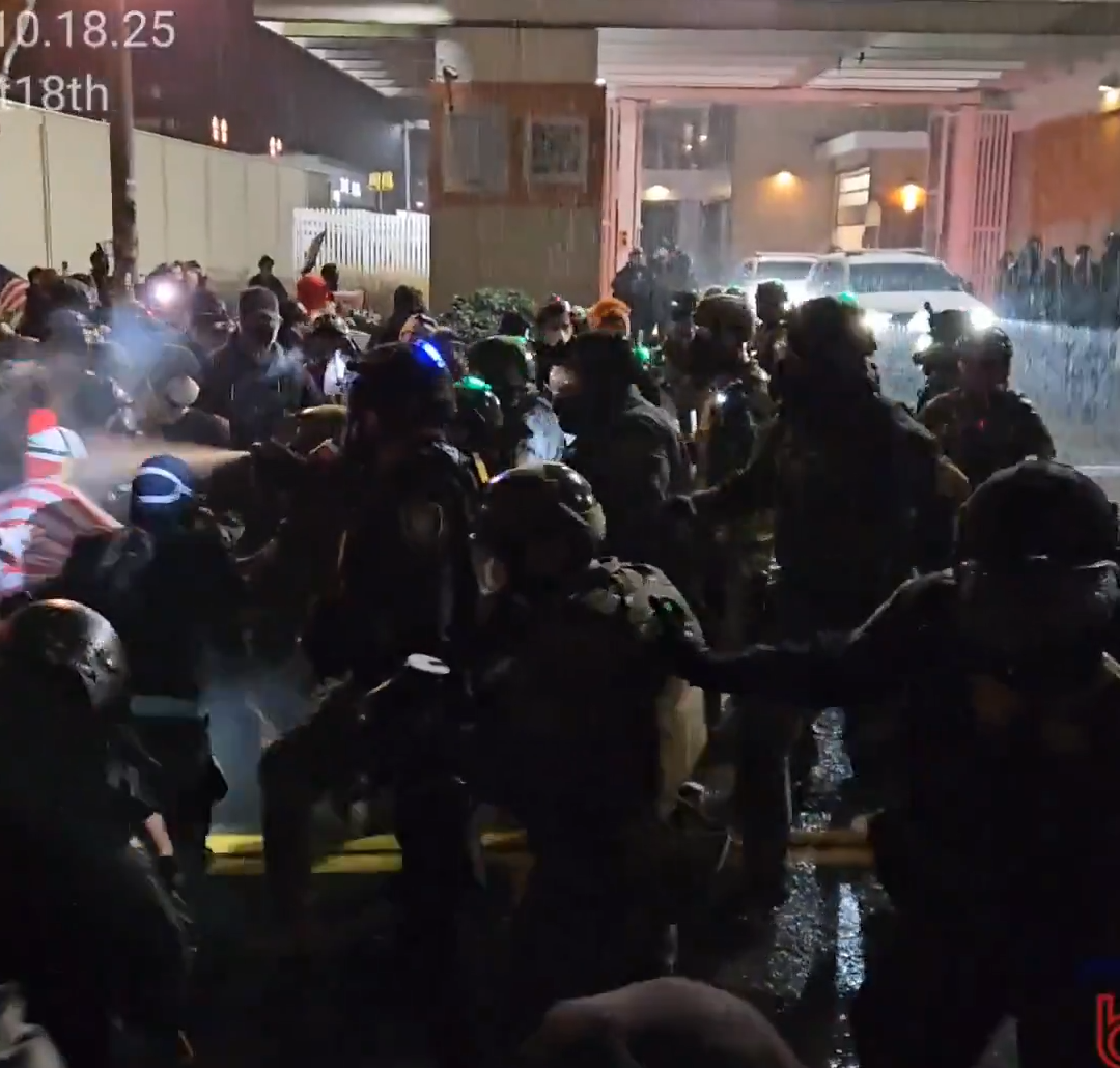 Newly released footage shows Anti-ICE protesters dancing in front of ICE agents shortly after the #NoKingsDayOct18th demonstration. What begins as a bizarre, almost humorous moment quickly escalates when agents push into the crowd. The video captures the full progression — from peaceful chanting, to dancing, to direct physical confrontation.