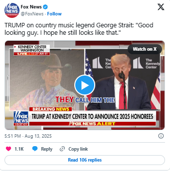 In 2025, Strait was named among the prestigious class of Kennedy Center Honors recipients, one of the highest recognitions for artists in American culture.