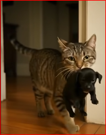 The next morning, the mystery was solved when a police officer knocked on our door, accompanied by our neighbor, Mrs. Miller. They explained that a stray dog, the puppies’ mother, had been found dead nearby. The puppies had been left alone, and Marsa must have discovered them. One by one, she had carried them home through the night, determined to give them a chance to survive. At first, Mrs. Miller, who had been feeding the stray dog, was upset. She worried the kittens might not be safe with a cat. But as she watched Marsa gently groom the puppies and keep them warm, her frustration faded. Instead, she was moved by the unlikely bond forming before her eyes. With the officer’s reassurance, she agreed to let Marsa continue caring for the little ones.