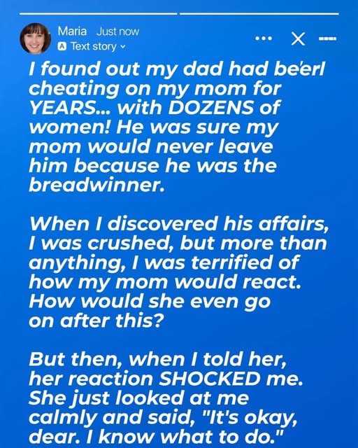 love.” That message led to dozens more. Different women. Different dates. A web of lies going back years. I felt sick. My first instinct was to protect my mom. She depended on him financially, and I worried the truth would destroy her. So I sat down beside her one quiet evening and gently told her everything. She didn’t cry. She didn’t look shocked. She just looked at me calmly and said, “I know.” That’s when my world shifted. She had known for almost ten years. But instead of falling apart,she’d started building a quiet escape plan. Little by little, she hid away money from the household allowance. She opened a secret bank account, took online finance courses late at night, and even did freelance work from a hidden laptop in the garage. All while playing the role of the supportive wife. She studied investing, learned accounting basics, and worked hard to become financially independent — all in secret. When the time was right,