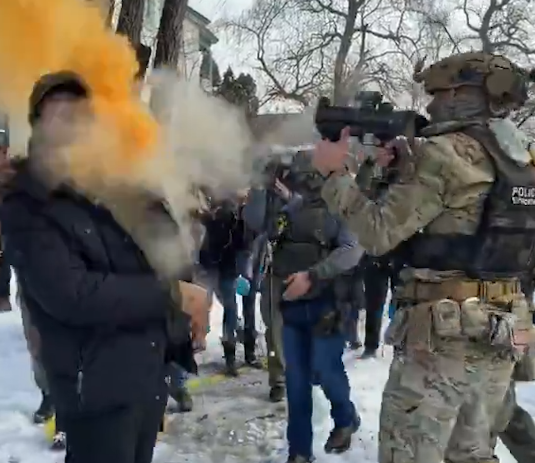 A protest involving federal agents quickly escalated after snowballs were thrown and tensions rose. Video shows a moment where one individual appeared to attempt to grab an agent’s weapon, prompting a swift response.