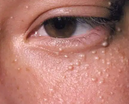 Have you noticed small white bumps on your face, especially around the eyes, cheeks, or forehead?